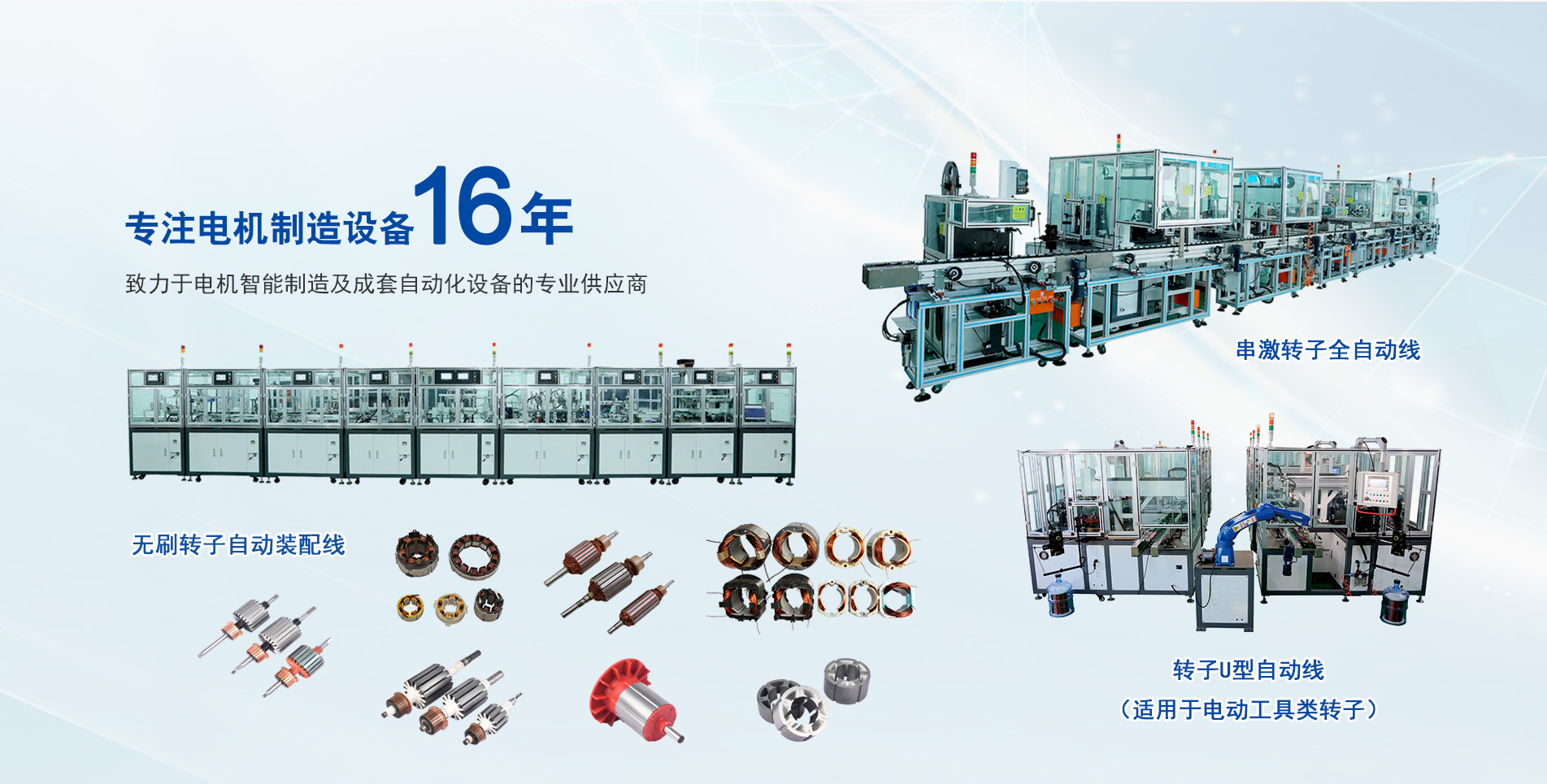 深圳市麻花星空无限mv智能裝備有限公司(sī)成立於2010年,位於深圳市光明新(xīn)區,是一家專業致力於電機配套自動(dòng)化、成套智能化(huà)設備(bèi)的(de)生產廠家,現研(yán)發有無刷馬(mǎ)達轉、定子自(zì)動線、串激電機自動線線、直流有(yǒu)刷電機生產線等電機生產設備,產品銷往(wǎng)全國各地及(jí)東南(nán)亞各國,並獲廣(guǎng)泛好(hǎo)評。
